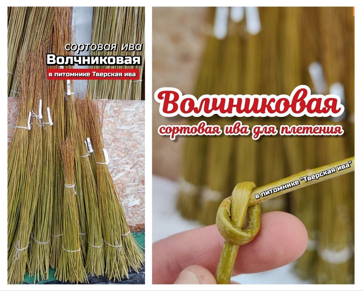 5️⃣0️⃣➗ уценка на весь живой прут! Отправка любого количества прутьев! От одной упаковки! Рубрика "ЦЕНА НА ЖИВОЙ ПРУТ"🌿 Сортовая ива Волчниковая ГИБКАЯ. Супер гибкая. Затягивается в узлы. Сорт применяется для лозоплетения и для плетения ивовых пальм. Цена за 100 штук: 100-120см. 750руб. 130-150см. 1250руб. 160-180см. 1750руб. Дешёвая цена - лучшая покупка для новичков в мире плетения! Попробуйте сплести своё первое дерево! Получите крутые эмоции и удовольствие от процесса! Внимание! Уценка из-за повреждений коры от града. Летом 2025г. в нашем питомнике весь живой прутик побил град. Град повредил кору по всей длине прута, но с одной стороны. Сейчас на коре остались шрамики, ранки от ударов града. Прутики ровные, гибкие, живые. 🚛Отправка живых прутьев состоится зимой, в холодное время года. Планируем отправлять заказы после Новогодних праздников, конец января -февраль. В продаже сейчас 5 сортов ивы в живых прутьях, с уценкой -50%: ✅Волчниковая ГИБКАЯ ✅Американка гигантская ✅Касп