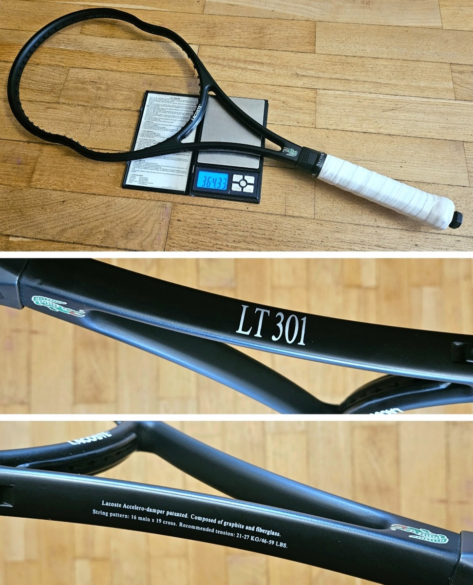 🔥 Lacoste LT301 - настолько уникальная модель теннисной ракетки, что соперников в этом плане ей подобрать непросто. И дело не только в гитарной форме головы ракетки. Не менее потрясающим было и внедрение системы гашения вибраций в ручку ракетки. К подобному Head пришёл несколько лет спустя, упаковав Suspention Grip в ручку своей легендарной Prestige 600. Но даже на этом фоне Lacoste LT301 отличалась тем самым вау-эффектом - антивибрационный модуль выходил из ручки ракетки, поэтому на ней нет традиционного колпачка: