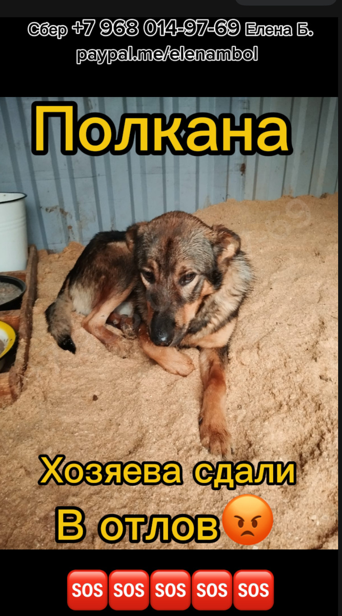 Полкана сдали в усыпалку Гомельского района😡😡😡. Хороший, молодой, преданный пес. Теперь он ничей. Полкан очень грустит и скучает по своим хозяевам. Но он никому не нужен. А значит по закону Беларуси должен умереть😢😢😢. На этом беды несчастного пса не закончились😩😩😩. Он заболел и нуждается в лечении. Клиники не могут больше брать волонтерских собак из за огромных долгов. На данный момент долги составляют 5000 белорусских или 140000 русских рублей. Это огромная и неподъемная сумма для волонтеров. Ведь Гомельские концлагеря для животных продолжают свое черное дело. Каждую неделю пополняя свои клетки. Иногда десятками хвостиков в неделю. Помогите погасить хотя бы частичка долга. Дайте шанс Полкана выздороветь и в будущем найти любящую семью. Он еще совсем молод и отчаянно борется борется за свою жизнь . СБЕР: 2202 2026 0746 6277 Елена Михайловна Б. карта привязана к тел. +7 968 014-97-69 "Добровольноe пожeртвованиe Полкан" Eсть Paypal: paypal.me/elenambol с обязательной пом