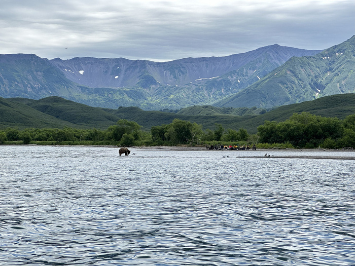 Когда я говорю, что на Камчатке за один раз видел больше 10 медведей все восхищено удивляются. И вот факт: все знают, что на Камчатке можно увидеть медведей, но те, кто туда приезжает во основном встречают не больше парочки за всё путешествие. И то скорее всего из окна машины по дороге куда-нибудь. Так как же нам это удалось? Всё дело в стремлении путешествовать там, где нет массового туриста. В июле мы отправились в одно такое место - озеро Курильское почти на самом юге Камчатки. Озеро особенно тем, что тут невероятно большая плотность медведей за счет обилия рыбы и дикости самого места. А чтобы попасть сюда, мы спрева приехали в небольшой поселок Паужетка, о котором я рассказывал в своем ТГ. Это озеро вулканического происхождения внутри огромной кальдеры, окруженное, опять-таки, вулканами. Тут организован заповедник (включен в список ЮНЕСКО), который следит за популяцией медведей, нерестом нерки и туристами. А попасть сюда непросто: либо вертолетом из Петропавловска-Камчатска, либо в