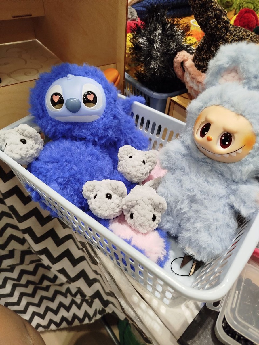 На ярмарке связала 2х пушистиков и 4 мышонка... Точнее второго пушистика почти связала, забыла дома сустав для головы, завтра закончу. По продажам- аренду не отбила (за 3 дня) хотя, у меня в первый день всегда отбивалась аренда... Но, посмотрим, что покажут оставшиеся 2 дня ярмарки 🫶