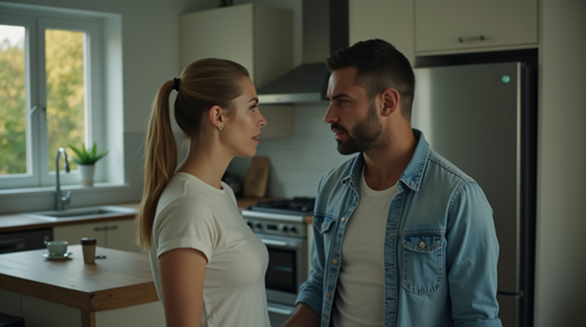 Сергей стоял в дверях кухни, скрестив руки на груди. Его тёмные глаза, обычно тёплые, сейчас смотрели холодно, почти чуждо. За окном шёл мелкий дождь, стучал по подоконнику, и этот звук только усиливал напряжение в комнате. Катя чувствовала, как воздух становится густым, словно перед грозой.