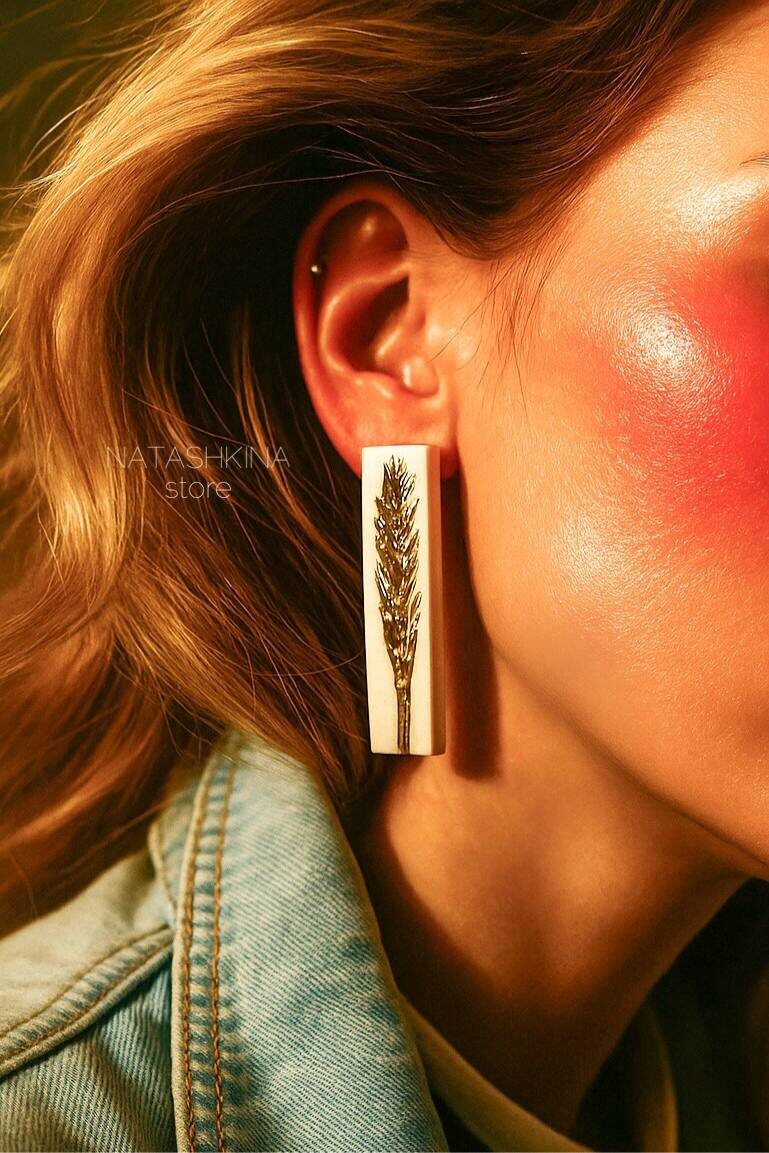 Авторские серьги-пшеница. Фарфор, настоящее золото, идеальный блеск