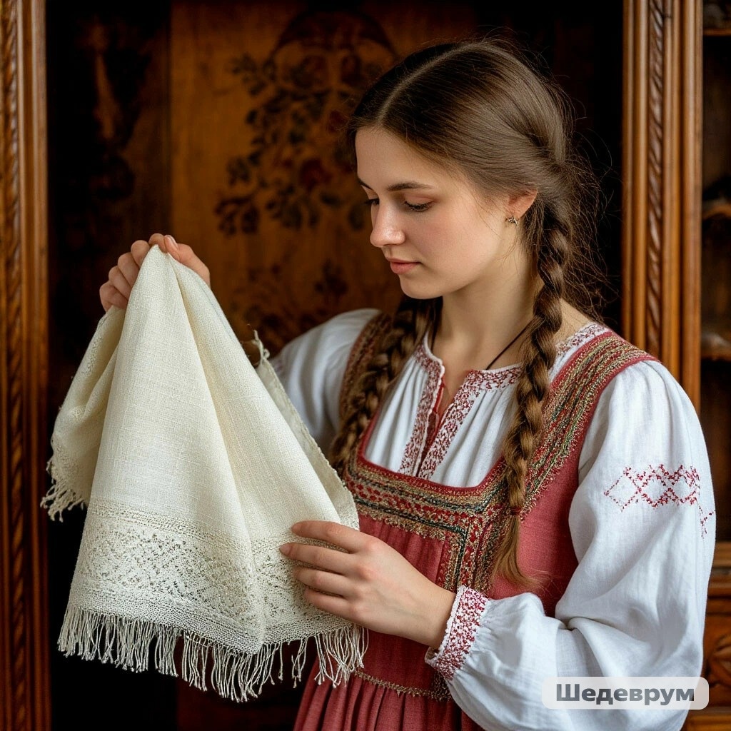 Взгляд её зацепился за белёный ничем не вышитый рушник, девушка спросила: