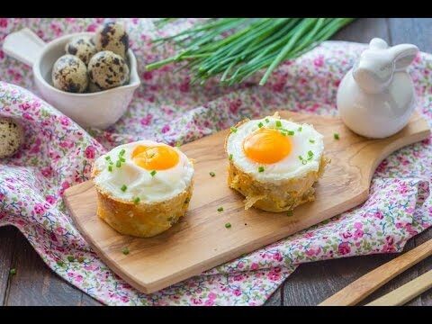 - Картофельные «гнездышки»: Тертый картофель отжимается от лишней жидкости, смешивается с яйцом, солью, перцем и любимыми специями. Формируются «гнездышки», в центре которых делается углубление для яйца. Запекаются до румяной корочки картофеля и готовности яйца.