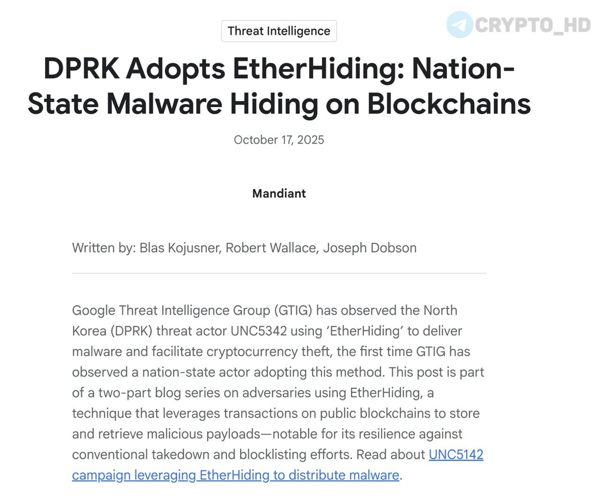 Северокорейские хакеры встраивают вредоносный код EtherHiding прямо в смарт-контракты блокчейна, а затем заражают реальные сайты, чтобы красть крипту и данные пользователей.