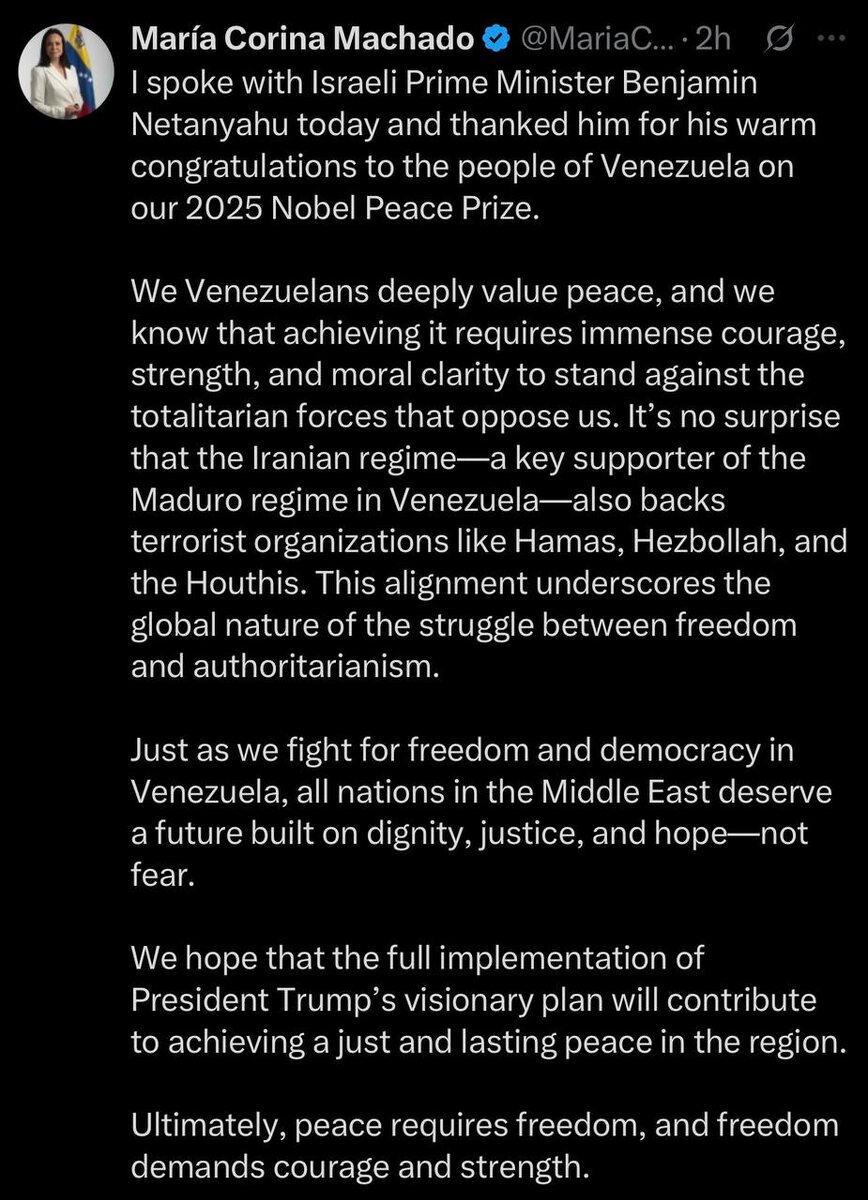 Nobel Prize winner Machado CALLS Netanyahu