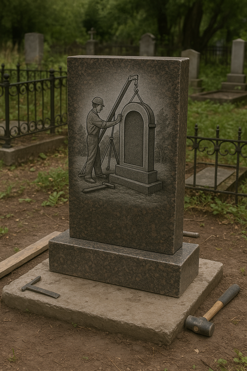 Установка. Монтаж выполняется с соблюдением всех технических требований и стандартов, что гарантирует устойчивость и безопасность памятника.