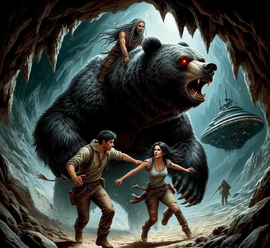 Затем на свет, на задних лапах вышло все существо. Это был медведь — исполин, воплощение самой идеи зверя, рожденное кошмаром земли. Он был под пять метров в холке, его плечи были покрыты гребнями окаменелой шерсти, а лапы, каждая размером с колонну, были вооружены когтями, длинными, как ножи ковша экскаватора, которые с сухим, скрежещущим звуком впивались в камень, оставляя глубокие, рваные борозды. Его пасть, слишком огромная для обычного медведя, была усеяна рядами кривых, желтых, как старый пергамент, клыков. С них на камень капала тягучая, черная, как нефть, слюна, шипящая и испаряющаяся при контакте с поверхностью. От него исходил запах — не просто крови или смерти, а запах дикой магии, разложения и немыслимой древности.