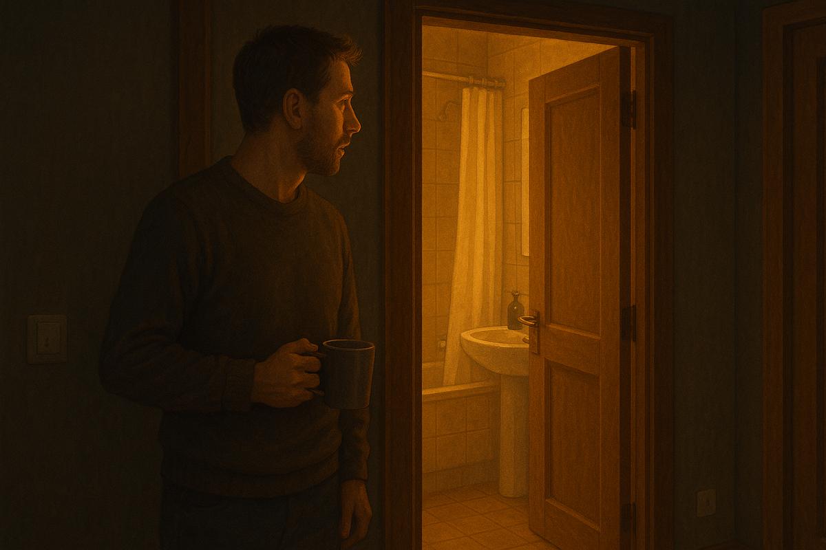 Свет в ванной загорелся, когда я только подумал о душе.