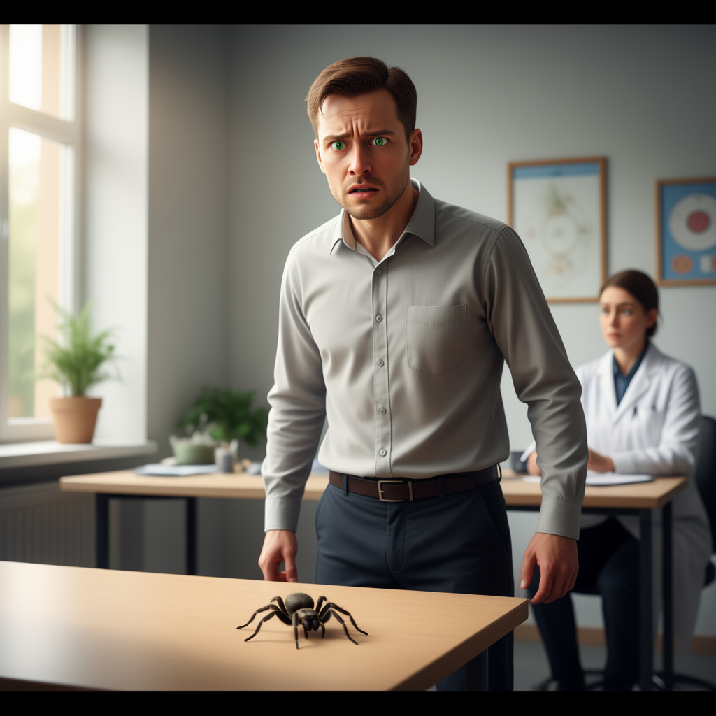 "Доктор, я 32-летний мужик, а кричу от паука как девочка!" 🕷️ Роман, успешный строитель, краснел от стыда. "Вчера на стройке увидел таракана и подпрыгнул на стол. Рабочие смеялись... Понимаю, что это иррационально, но ничего не могу с собой поделать. Из-за этого страха даже дачу продал - там слишком много 'тварей'."