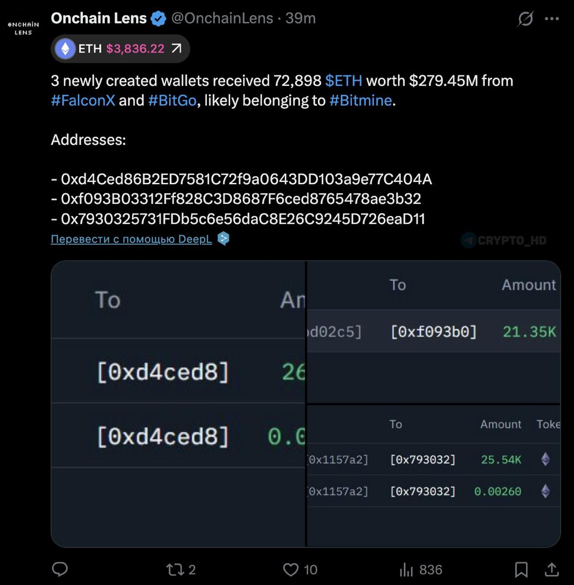 π€ Onchain Lens: ΠΠΎΠΌΠΏΠ°Π½ΠΈΡ Bitmine ΠΏΡΠΎΠ΄ΠΎΠ»ΠΆΠ°Π΅Ρ ΠΏΠΎΠΊΡΠΏΠ°ΡΡ #ETH Π½Π° ΡΠΎΡΠ½ΠΈ ΠΌΠΈΠ»Π»ΠΈΠΎΠ½ΠΎΠ² Π΄ΠΎΠ»Π»Π°ΡΠΎΠ²! ΠΠΎΡΠ΅Π»ΡΠΊΠΈ: 1, 2, 3. ΠΠΎΠ»ΠΈΡΠ΅ΡΡΠ²ΠΎ: 72,898 ETH ΠΠΊΠ²ΠΈΠ²Π°Π»Π΅Π½Ρ: $279m P.S. ΠΠΎ ΠΆΠ΄Π΅ΠΌ ΠΏΠΎΠ΄ΡΠ²Π΅ΡΠΆΠ΄Π΅Π½ΠΈΡ Π² ΡΠ°ΠΊΠΎΠΌ ΡΠΎΡΠΌΠ°ΡΠ΅ ΠΎΡ ΡΠ°ΠΌΠΎΠΉ ΠΊΠΎΠΌΠΏΠ°Π½ΠΈΠΈ. Crypto Headlines
