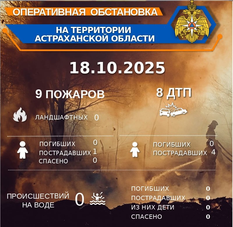 🚨Оперативная обстановка на территории Астраханской области по состоянию на 00:00 18.10.2025