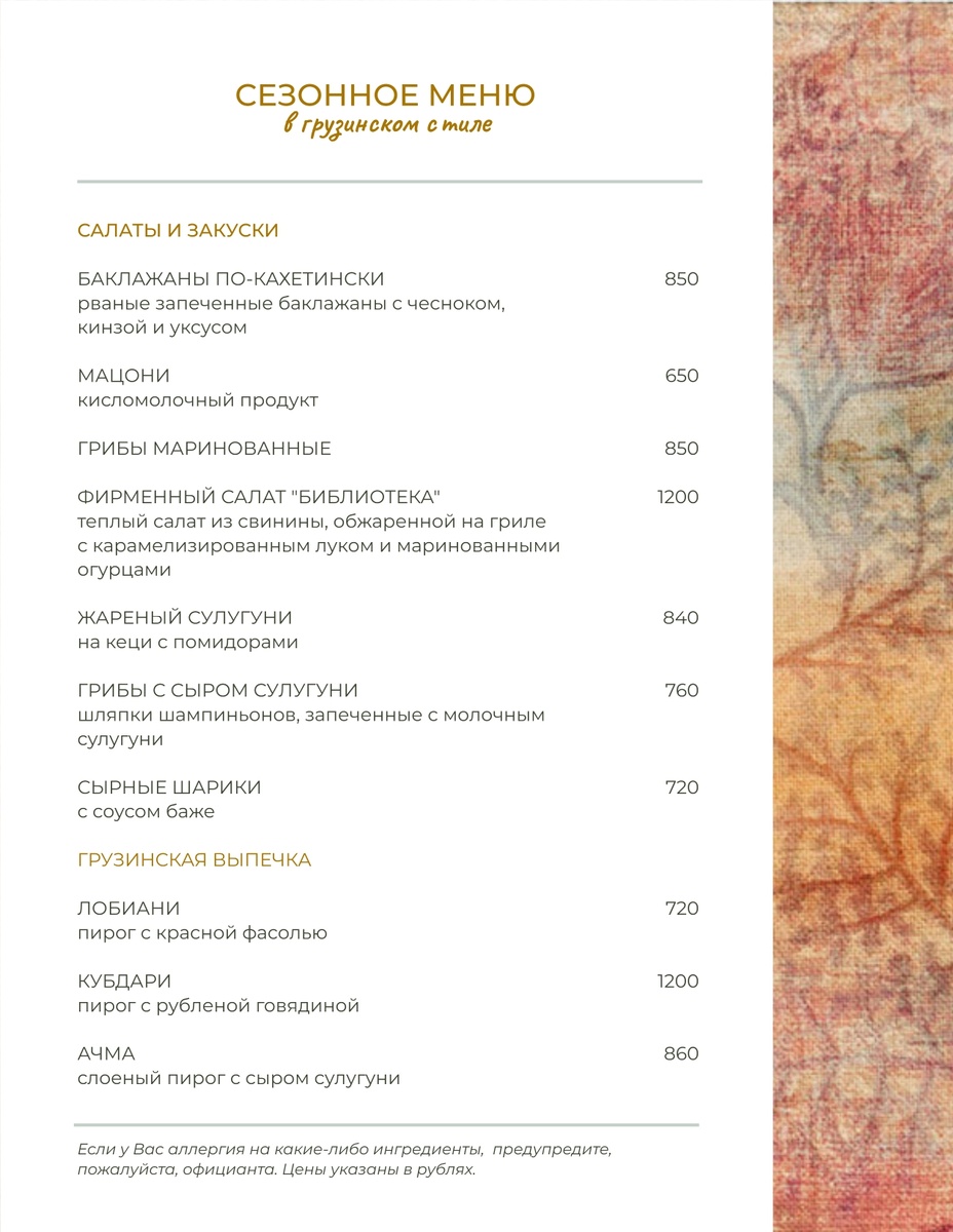 Сезонное меню в кафе «Библиотека» Новопеределкино | Грузинская кухня