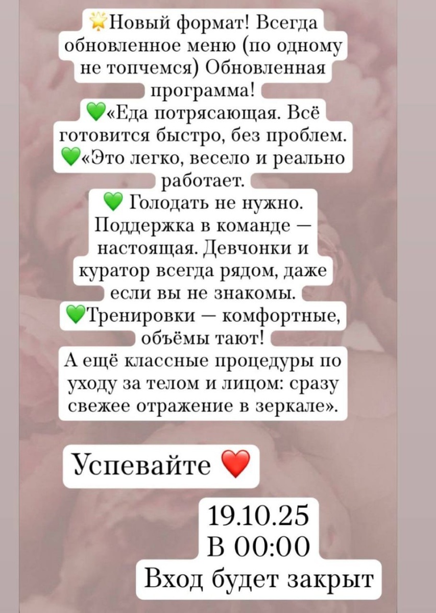🏆Стартуем уже завтра! 🚀Если и вы чувствуете, что пора перезагрузиться – самое время начать! Ведь программа даёт мощный запуск жиросжигания и обновления всего организма без голода! 📎 Сразу вы получите доступ к чату, где вас ждет много интересного! 📎 Чат для всех участниц открыт, завтра мы разберем все непонятные для кого либо вопросы,познакомимся с меню ,рекомендациями и информацией! 📎 В понедельник откроются первые уроки и рецепты и мы начнем путь к нашей здоровой ,стройной жизни ! Присоединяйтесь ❤️ Написать и забронировать можно по ссылкам: 🍒VK - vk.com/olgaf2209 ( написать мне лично) 🍒Группа в VK - vk.com/ofdiet2022 🍒TG - t.me/Olqaf2209 🍒 Курс длится 21 день! ✨ 💰 Стоимость участия для новеньких участниц или тех, кто не проходил данную программу от 6 месяцев: 1799р , Далее :если возвращаетесь в течении 6 месяцев или переходите в следующий курс 1599 р ! 📍 **Формат: онлайн, доступный каждому!