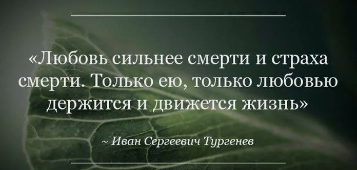 Однажды днём, бродя по библиотечному залу клиники, он наткнулся на старый том Тургенева. Он машинально открыл его, и его взгляд упал на строчку: «Любовь сильнее смерти и страха смерти. Только ею, только любовью держится и движется жизнь».