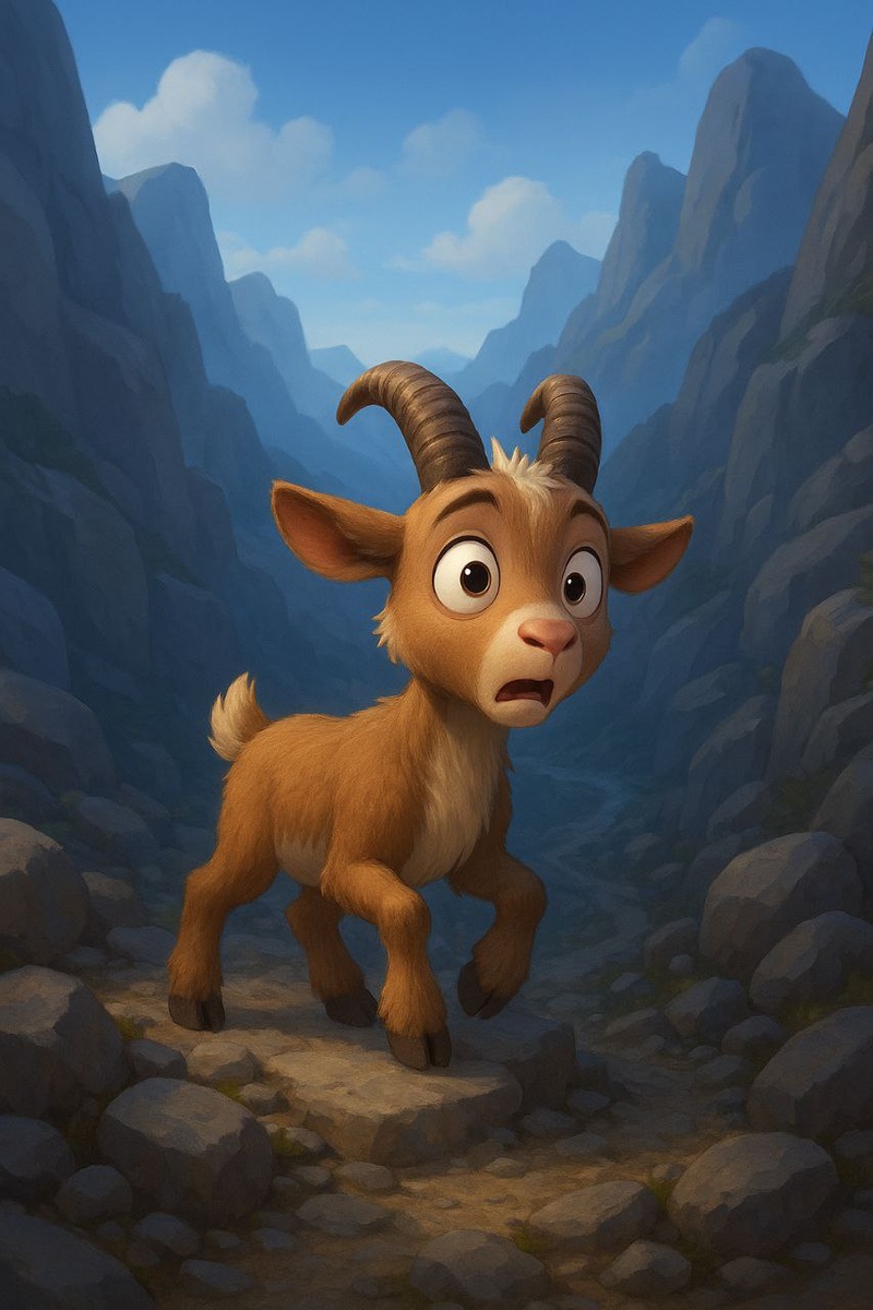 Сказка «Горный козёл, который потерялся» Высоко в горах, где облака ложатся прямо на склоны, а ветер поёт свои песни между острыми скалами, жил-был молодой горный козёл по имени Арчи. У него были блестящие глаза, мягкая шерсть и горделивые рога, которые он очень любил показывать всем зверям. Арчи считал себя самым ловким и смелым козлом на свете. Каждое утро он выходил на утёс и крикливо бодал воздух, будто бросая вызов самому небу. — Я, Арчи, покоритель гор! — кричал он. — Осторожнее, сынок, — часто говорила мама-козочка. — Горы не любят хвастунов. Они терпят лишь тех, кто уважает их силу. Но Арчи только хмыкал. Однажды, решив доказать всем, какой он храбрый, Арчи отправился в самое далёкое ущелье, куда даже старшие козлы не заходили. Там, говорили, ветер сбивает с ног, а камни коварно скользкие. Но ведь именно там, по мнению Арчи, и должны были ждать настоящие приключения! Он бодро запрыгивал с камня на камень, пока вокруг не стало тихо и незнакомо. Ветер усилился, под ногами заш