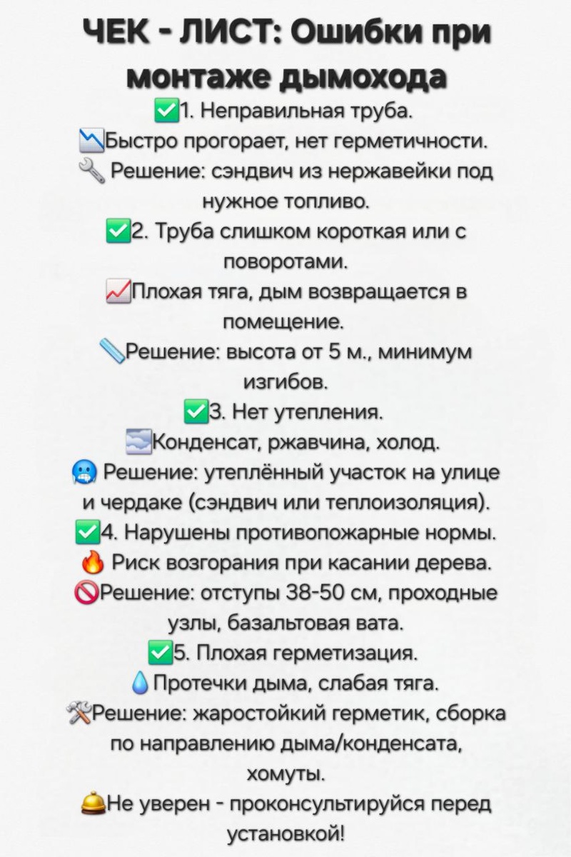 Ребят, сегодня простым языком расскажем, какие косяки чаще всего допускают при установке дымоходов — и почему потом всё идёт наперекосяк. Если у вас печка, камин или котёл — эта инфа пригодится 100%.