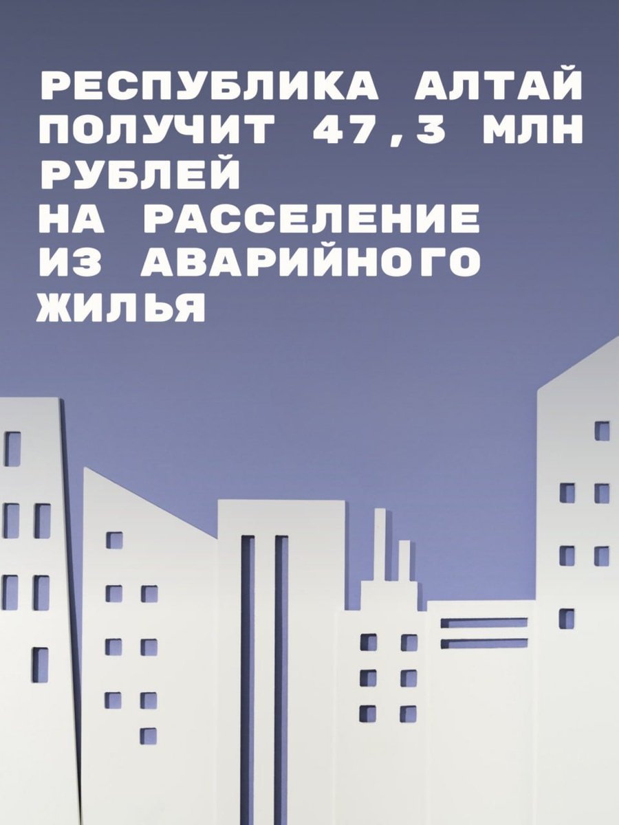 Республика Алтай включена в федеральную программу по переселению граждан из непригодного для проживания фонда. Финансирование в размере 47,3 млн рублей будет направлено на приобретение нового жилья для жителей Шебалинского и Усть-Коксинского районов.