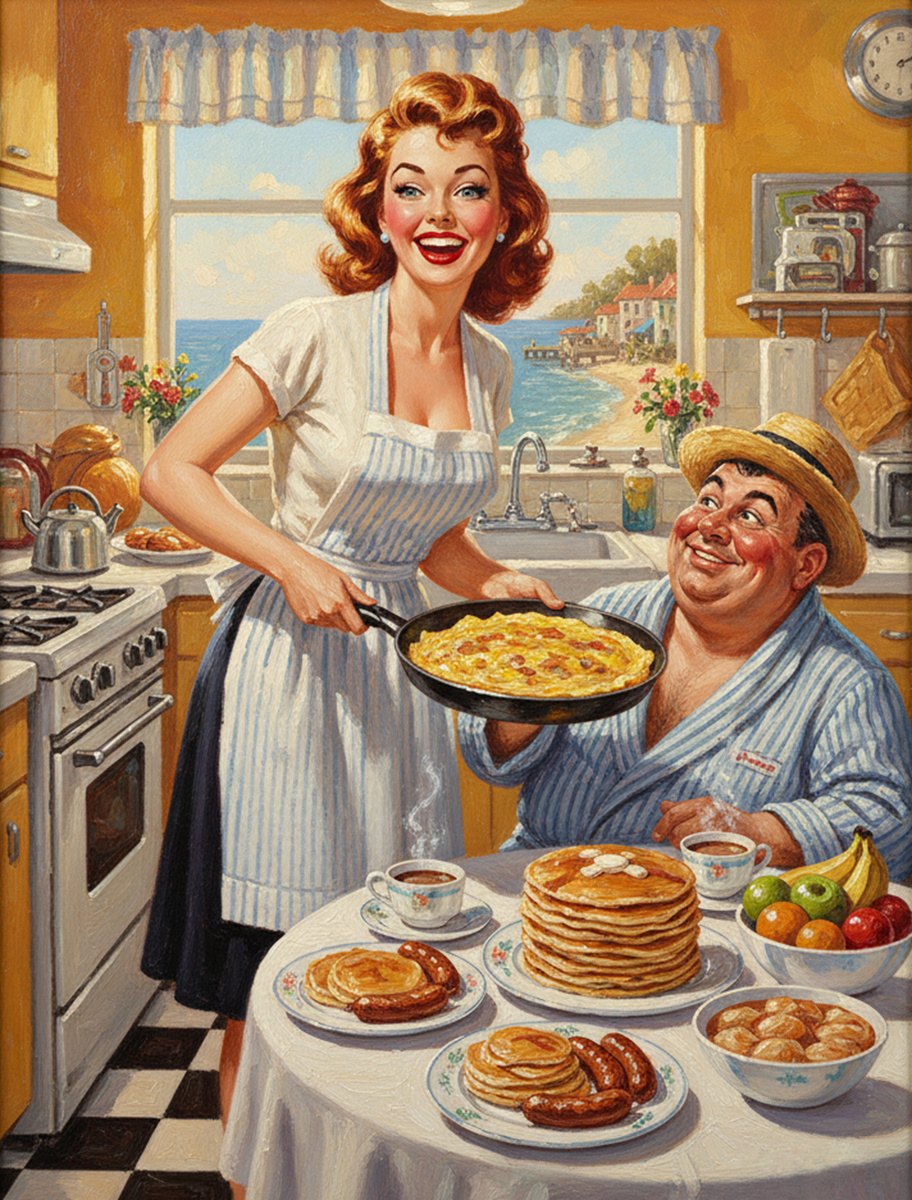 Семья ожидает гостей. Жена суетится, накрывая на стол. Муж, наблюдая за процессом, делает замечание: