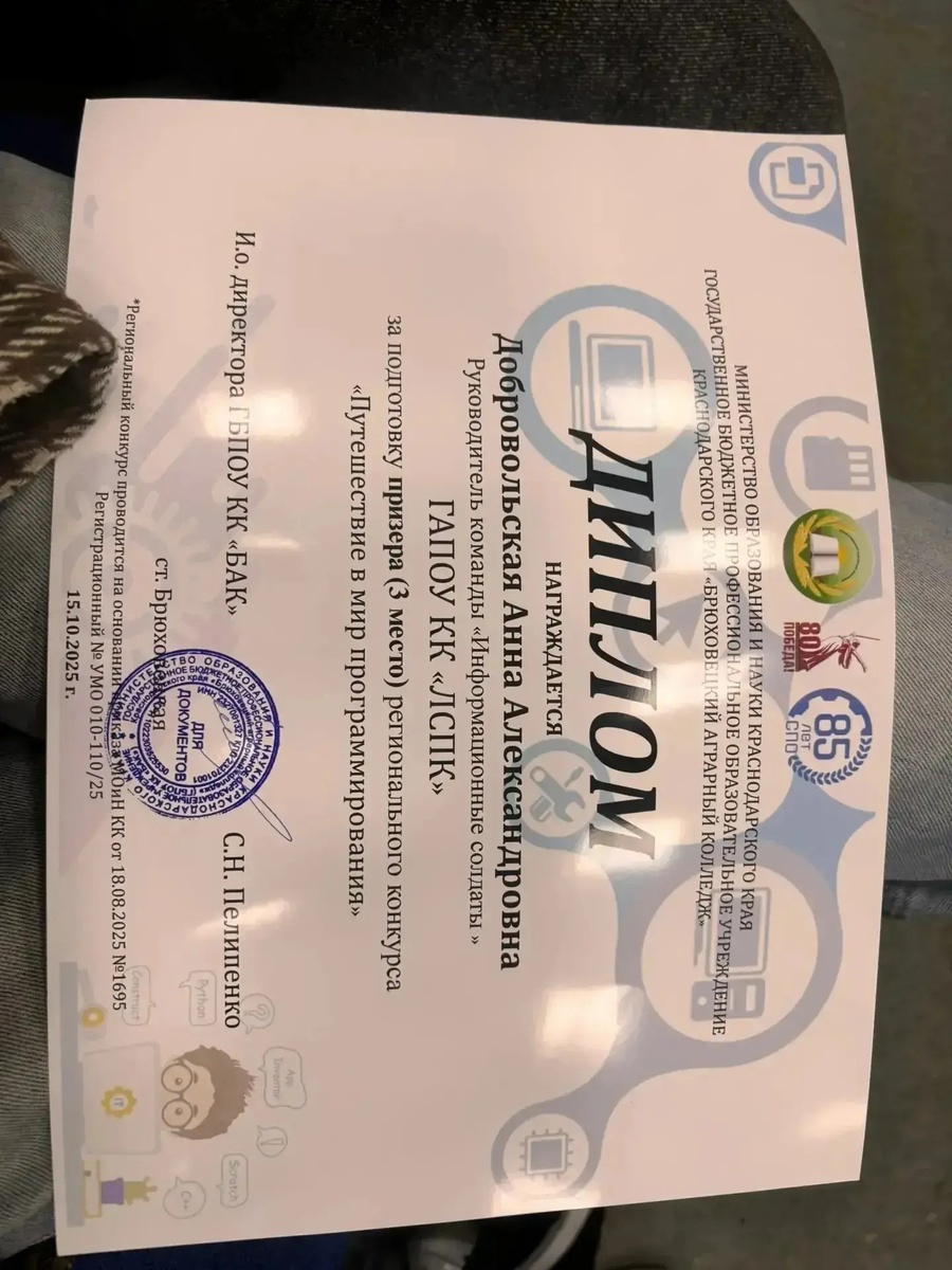 📎15 октября на базе государственного бюджетного профессионального образовательного учреждения Краснодарского края "Брюховецкий аграрный колледж" успешно прошел региональный конкурс "Путешествие в мир программирования". Это значимое событие собрало обучающихся укрупненной группы специальностей 09.00.00 Информатика и вычислительная техника, предоставив им отличную возможность продемонстрировать свои знания и навыки.
