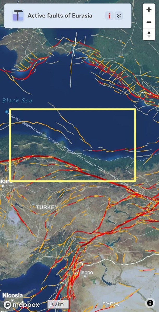Северо-восточное побережье Турции в Черном море также находится под вероятностью землетрясения М5-6 в течение 7дней