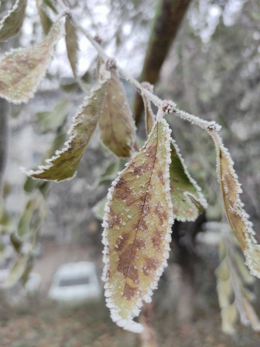 Изморозь на осенних листьях напоминает, что зима близко. Успели застать или проспали?