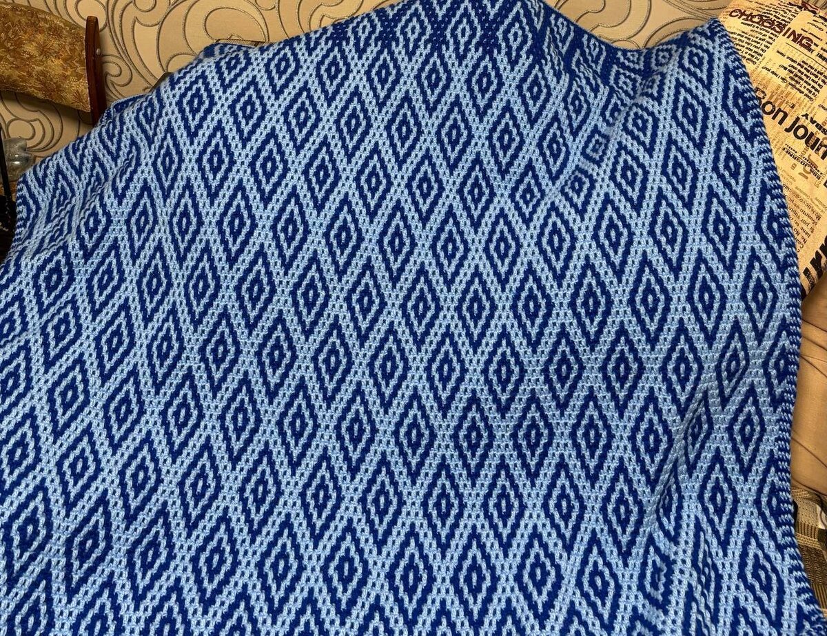Один из самых спокойных и вместе с тем универсальный узор — Наталья из чата «Вафельные ромбы» вяжет плед🔥
