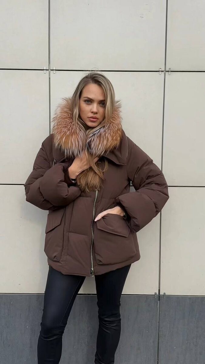 2️⃣Длинноворсовый мех в рыжевато-перламутровом тоне делает куртку дерзкой и дорогой одновременно.