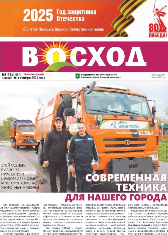 Этой осенью в Абинске приступили к работе две новые многофункциональные уборочные машины Как сообщил и.о. руководителя МКУ «Благоустройство» Андрей Федосеев, КАМАЗы были приобретены администрацией городского поселения. Уборочная техника работает через день, но при необходимости и чаще, в ночное время и рано утром, чтобы новый день жители города начинали с передвижения по чистым улицам. Многофункциональные уборочные машины – специальная техника, сочетающая несколько функций, что позволяет выполнять различные виды работ и повышает эффективность, экономит время и ресурсы по сравнению с использованием отдельных узкоспециализированных машин. Так, первый камаз – подметально-уборочный, функционирует по принципу промышленного пылесоса: собирает мусор с помощью специальных щеток (пыль, песок, листву и др.) и транспортирует в специальный бункер. Вторая машина может применяться в качестве самосвала и дорожно-уборочной техники, а также оснащена мойкой высокого давления – моет дороги, бордюры, оста