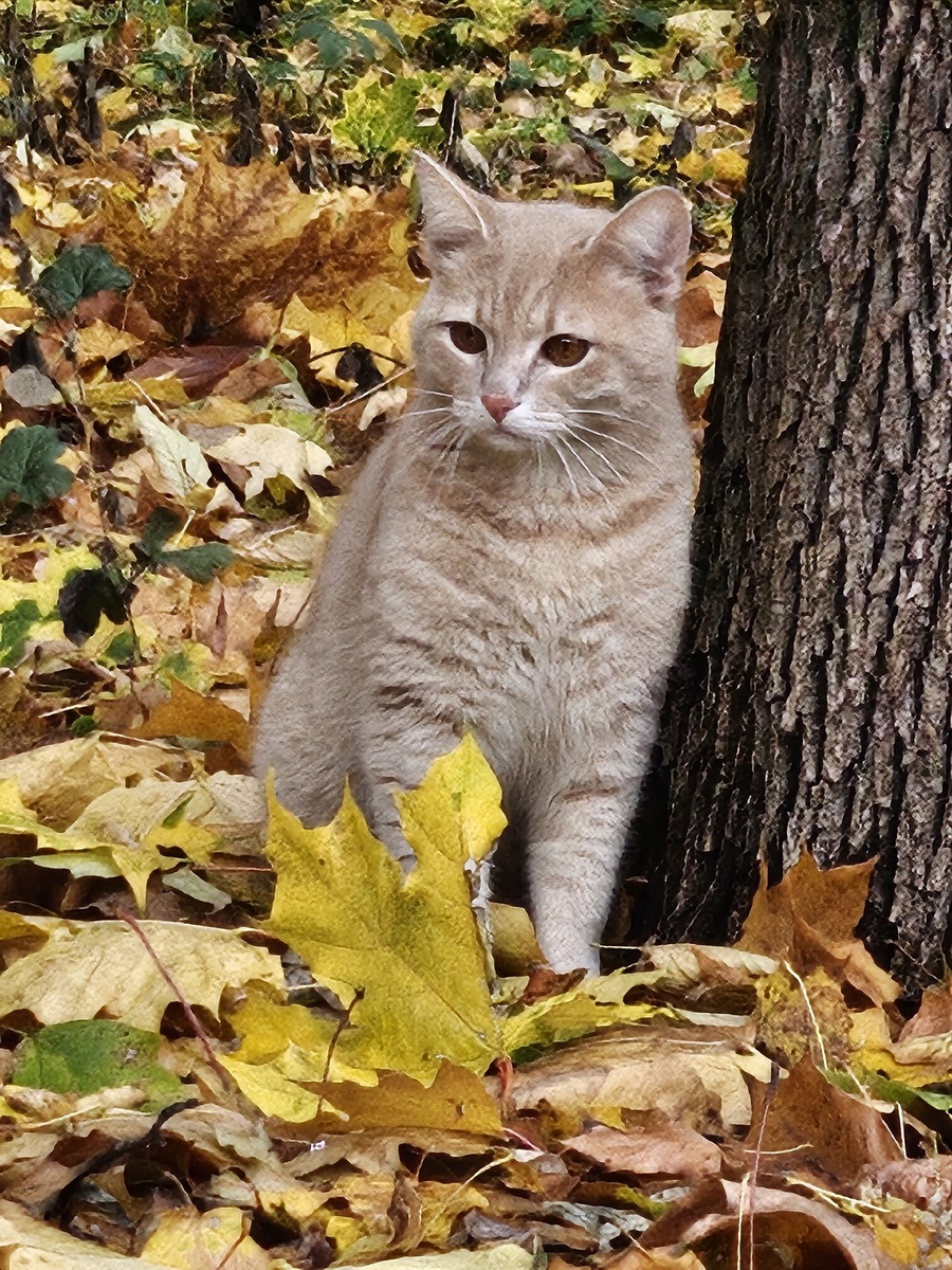 За домом Новосибирская 11, бегает котик, на вид, домашний.