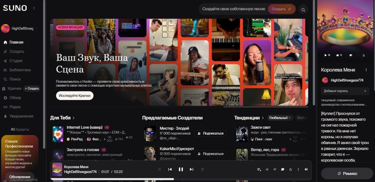 🎵 Создавай хиты за 30 секунд: как Suno AI меняет музыку Представьте: вы вводите пару строк — и через полминуты у вас готова полноценная песня. С вокалом, аранжировкой и даже текстом. Звучит как фантастика? А вот Suno AI уже делает это реальностью. Этот нейросервис позволяет любому — даже без музыкального образования — создавать треки в любом стиле: от попа и хип-хопа до лоу-фай и саундтреков. Просто опишите настроение, жанр и идею — и ИИ сделает всё остальное. 🔥 Почему это взрывает соцсети: Песни получаются настоящими — с эмоциями, структурой и запоминающимися припевами. Идеально для рилсов, подкастов, стримов или просто творческого эксперимента. Бесплатная версия уже даёт мощный результат. Попробуйте сами: напишите промт вроде “Upbeat pop song about self-love, female vocals, catchy chorus, perfect for TikTok” — и получите свой мини-хит. Музыка больше не привилегия избранных. Она — у всех под рукой. 🎶 👉 А вы уже пробовали Suno? Делитесь своими треками в комментариях!