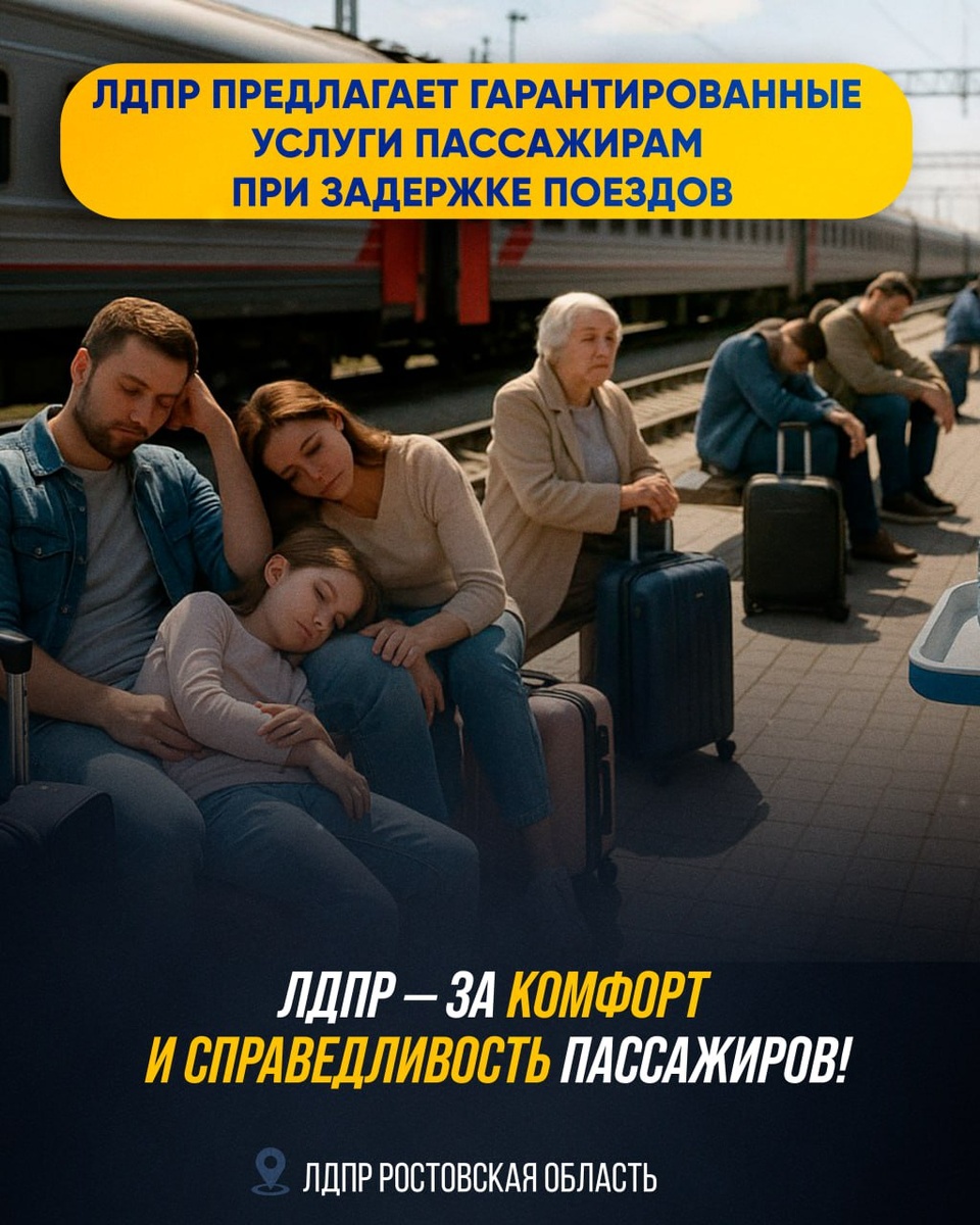 ЛДПР предлагает гарантированные услуги пассажирам при задержке поездов 🔝 Депутаты фракции ЛДПР во главе с Председателем Леонидом Слуцким разработали законопроект, обязывающий перевозчиков обеспечивать бесплатную помощь пассажирам в случае длительных задержек поездов дальнего следования. Согласно инициативе: ✅ При опоздании более 2 часов — пассажирам должны предоставлять напитки и доступ к связи; ✅ При ожидании более 4 часов — горячее питание; ✅ Если поезд не отправлен через 8 часов — бесплатное размещение в гостинице и организация хранения багажа. «В ЛДПР приходит множество жалоб пассажиров на то, что РЖД не предоставляет социальные и бытовые услуги при задержке поездов. А такие случаи уже происходят чаще, особенно в регионах, близких к зоне СВО. В законе до сих пор нет норм, которые гарантировали бы комфорт пассажирам задерживающихся поездов, хотя авиаперевозчики уже обязаны это делать. Нужно ликвидировать этот пробел для железнодорожников», — подчеркнули в ЛДПР. ➡️ Законопроект