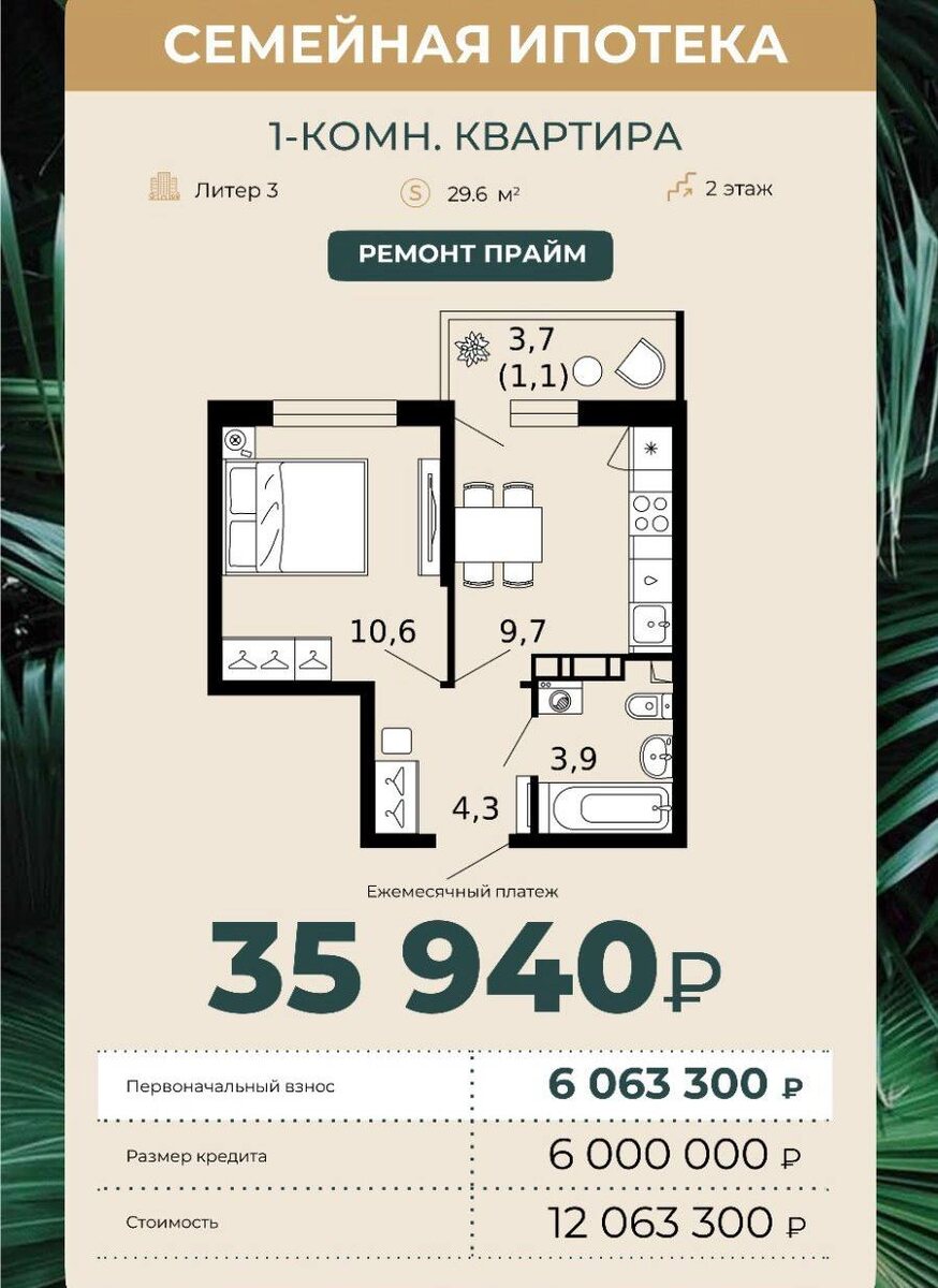 А знаете какой платеж по ипотеке может быть у вас? 😉 ⠀ Подготовила интересные расчеты! Всего 35 940 ₽ в месяц и собственная квартира в Сочи в «кармане»! ⠀ Отличная возможность приобрести квартиру по СЕМЕЙНОЙ ипотеке как в строящейся очереди, так и уже в готовых домах! Вселяйтесь сразу или стройте планы на будущее с выгодой. ⠀ Успейте забронировать лучшее предложение - цены и ставки не вечны! ⠀ ➡️ Напишите мне в личные сообщения @julia_usachevagrc «Лес» и я расскажу подробнее о данном предложении!