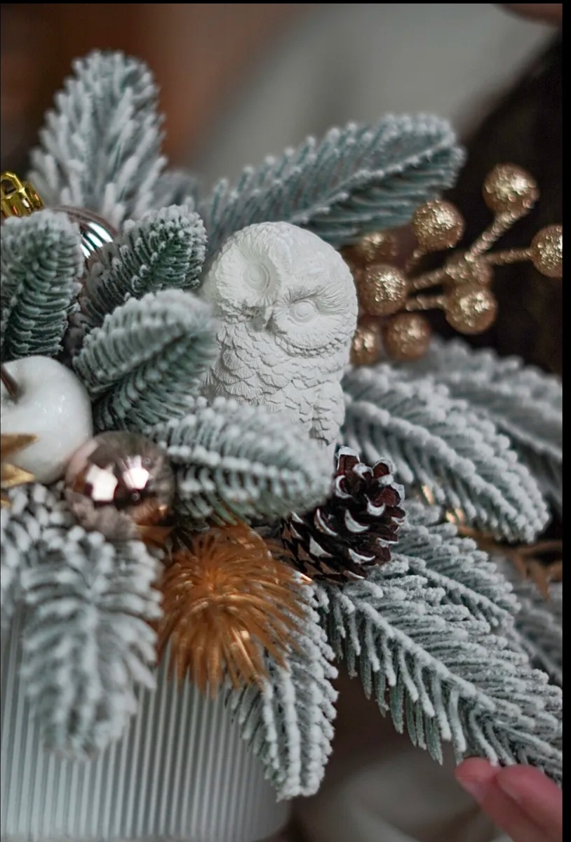 Композиция сделана из качественных материалов, поэтому не осыпается и не теряет вид со временем. Даже спустя годы она будет выглядеть свежо — будто только что достали из коробки. Особенно приятно, что декор подобран в мягких, сочетающихся тонах — без кислотных бликов и дешёвой фольги. Это тот случай, когда новогоднее украшение не спорит с интерьером, а дополняет его.