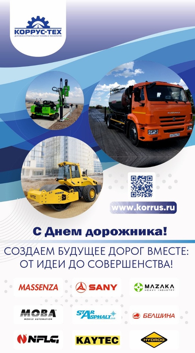 В этот праздник мы хотим поздравить всех, кто своим трудом создает надежные и безопасные магистрали нашей страны! Ваш труд — это основа развития и связи целых регионов. Мы в ГК «Коррус-Тех» каждый день работаем, чтобы обеспечить вас лучшей техникой для воплощения самых амбициозных проектов. Создаем будущее дорог вместе!
