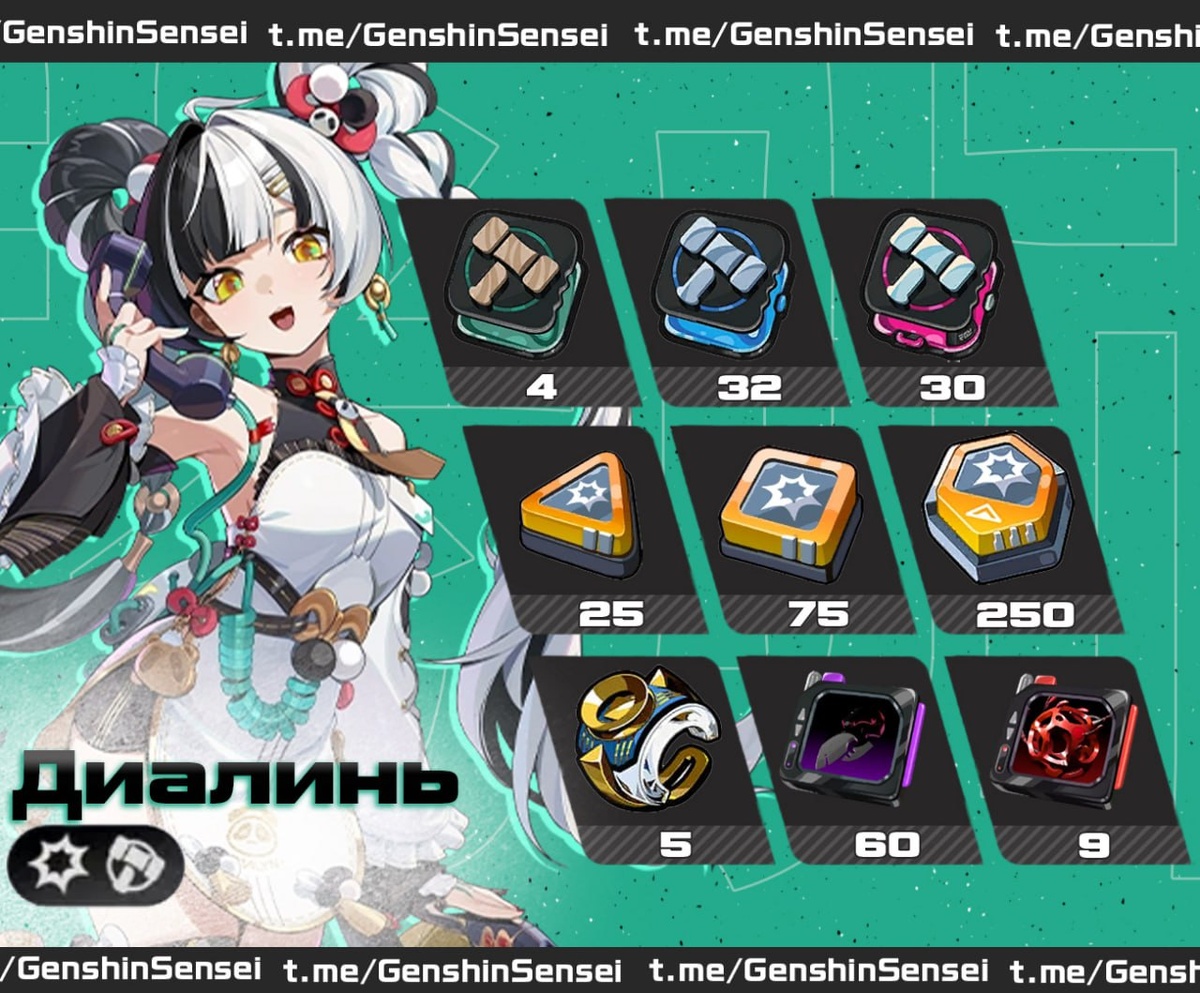 💳 Карточка прокачки Диалинь Появилась инфа по префарму для новой красотки, сохраняйте себе на будущее, если планируете её выбивать, пригодится #zzz_слив #zzz2_4 / Подпишись на Сенсея