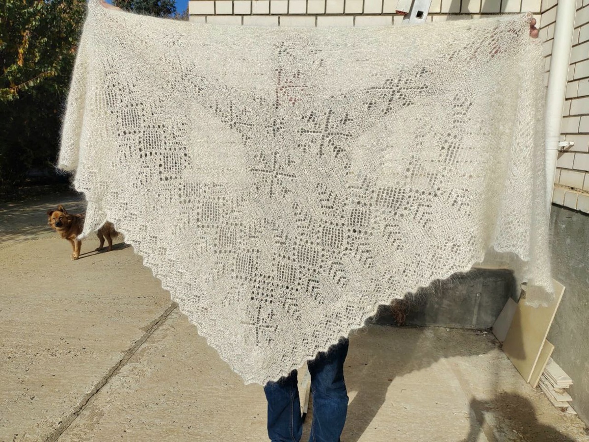 Как вам наша совместная работа, девочки? Шаль👌 Я пряла, Лариса вязала, пух мой В шали пол-кило пуха Эксклюзив. Она толстая и пушистая, ео в то-же время ажурная Основа здесь очень тонкая, раз в 10 тоньше, чем обычно вяжут на поток
