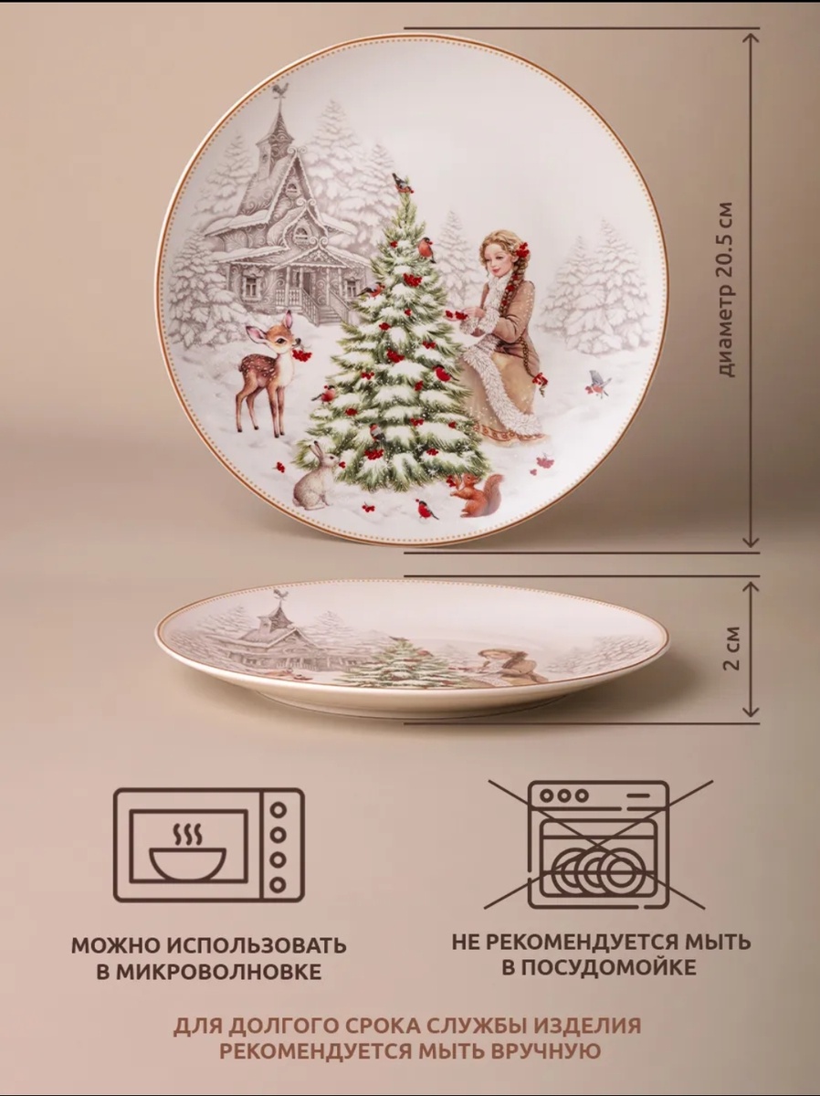 Эта фарфоровая тарелка сразу привлекает внимание своей детальной и живой росписью. Сюжет любимой новогодней сказки оживает на белоснежной тонкостенной поверхности. Красивые линии и насыщенные цвета делают её визуально интересным элементом сервировки, который невозможно не заметить на праздничном столе.