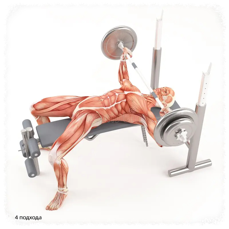 1. Большая грудная мышца — это основной генератор силы в данном упражнении. Она обеспечивает основную тягу штанги к туловищу, что позволяет выполнять подъём с максимальной эффективностью.