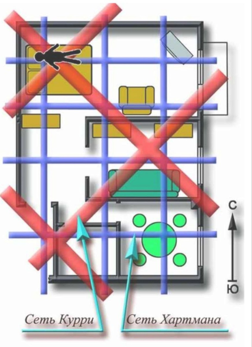 Сейчас практически забыта тема геопатогенных точек земного излучения с "+" и "-" энергией. Это не о территориях, площадью в несколько квадратных километров, а о пронизывющих наши дома лучах земного излучения. Термин Линии Хартмана услышал впервые в 1992 г. Это сетка энергетических линий земли, названа в честь Эрнста Хартмана в 50-х гг. Решетка Хартмана прямоугольной формы. Линии идут с запада на восток и с севера на юг. На узлах, в точках пересечения, отмечается преобладание плохого настроения, раздраженность, упадок сил, снижение работоспособности, нарушение сна. При длительном влиянии такого узла возникают болезни. Пересечения с "+" энергией встречаются намного реже и считаются Местами Силы. Главным инструментом определения Линий Хартмана являются биорамки. У меня биорамки исправно работают в руках с 1993 г. и показывают отличные результаты как при выявлении узлов земного излучения, так и при диагностике размеров и структуры биополя человека. Выявление Линий Хартмана и точек