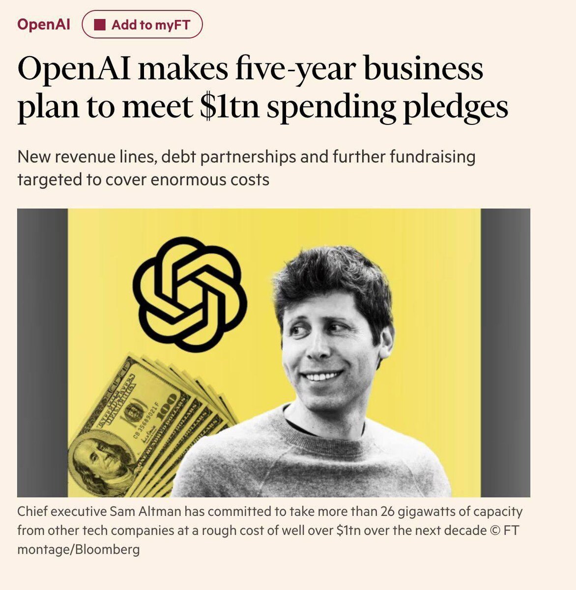 💰 FT раскрыла 5-летний бизнес-план OpenAI: $1 трлн на серверы и 800 млн пользователей, из которых платят лишь 5