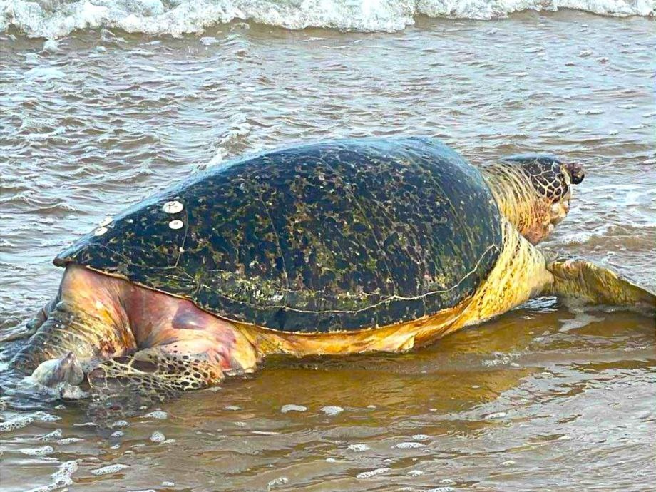 Вчера днём в Муйне на побережье вынесло течением мертвую морскую черепаху