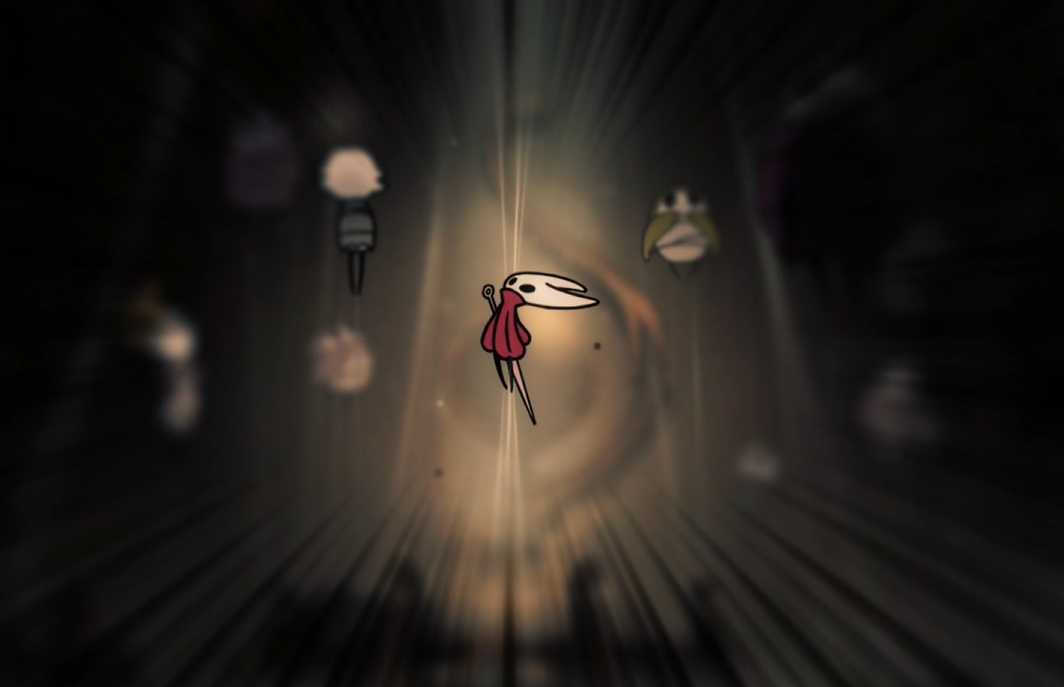 На фоне мы видим Вдову, которая сидит на трупе жука и дергает за нити шелка, которые уходят вниз. Сразу становится понятно, что Звонивилль, который находится прямо под нами, страдает именно от этой заразы. Также Хорнет упоминает, что Вдова просто управляет нитями, но не является источником. Это намек на еще более опасное существо, с которым мы столкнемся в будущем.
