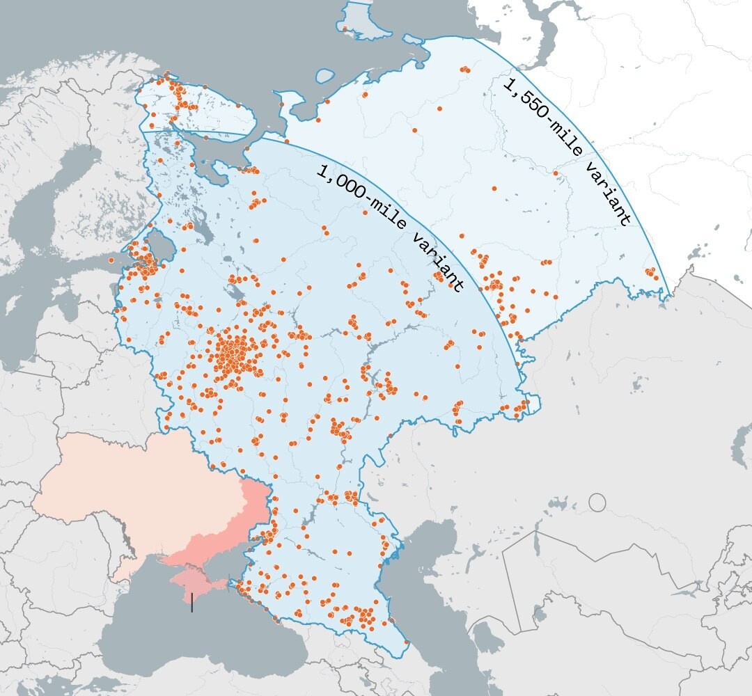 🖼 На картинке радиус поражения ракетами «Томагавк» территории России.