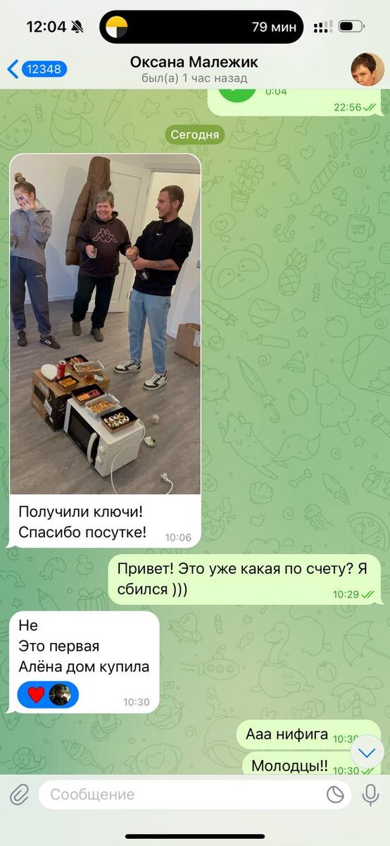 Новый день, новая победа 🥇 Привет банда! Ну что то давайте еще накидаем огней Оксане Малежик за еще один собственный объект недвиги 🔥 В продолжение вчерашней мысли: Одни не начинают, чтобы не прогореть или сомнений ху@ва гора. Другие топят и формируют капитал. Это все равно, что начинать игру, чтобы не проиграть. Так выиграть не возможно. Либо тебе НАДО и ты не видишь препятствий, либо думай в стороне и освободи дорогу. Помню у Оксаны не было время выбирать между «подумаю» и «потом». Она с детьми переехала из Луганска в Питер и работала уборщицей. Без связей, без гарантий что получится, без капитала - делала первые шаги. Сегодня уже у каждого по квартире, машине и впринципе все в жизни хорошо. Почему я публикую такие кейсы? Для того, чтобы показать людей, которым НАДО, и разбудить тех, кто застрял в ожидании «хотелось бы». Оксана, тебя обнял, покружил в танце! Мы идем только наверх 👆
