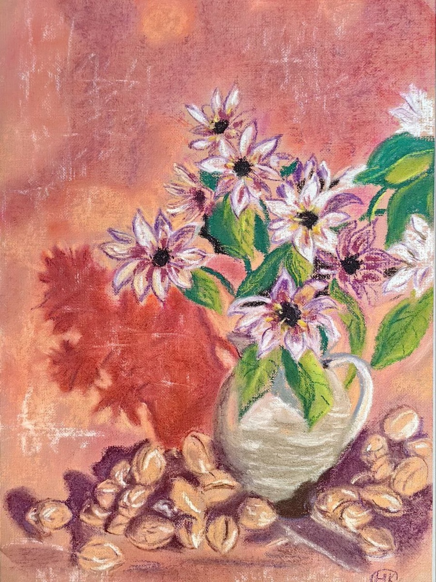 Нарисовала сухой пастелью вот такие цветы .