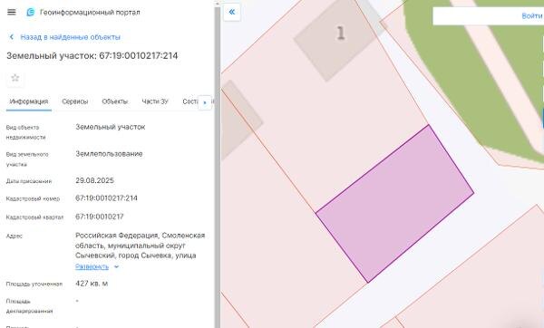 Название: Земельный участок относящейся к категории земель населенных пунктов, расположенного по адресу: Российская Федерация, Смоленская