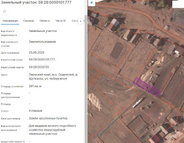 Название: Земельный участок с кадастровым номером 59:28:0050101:777, вид разрешенного использования –для ведения личного подсобного