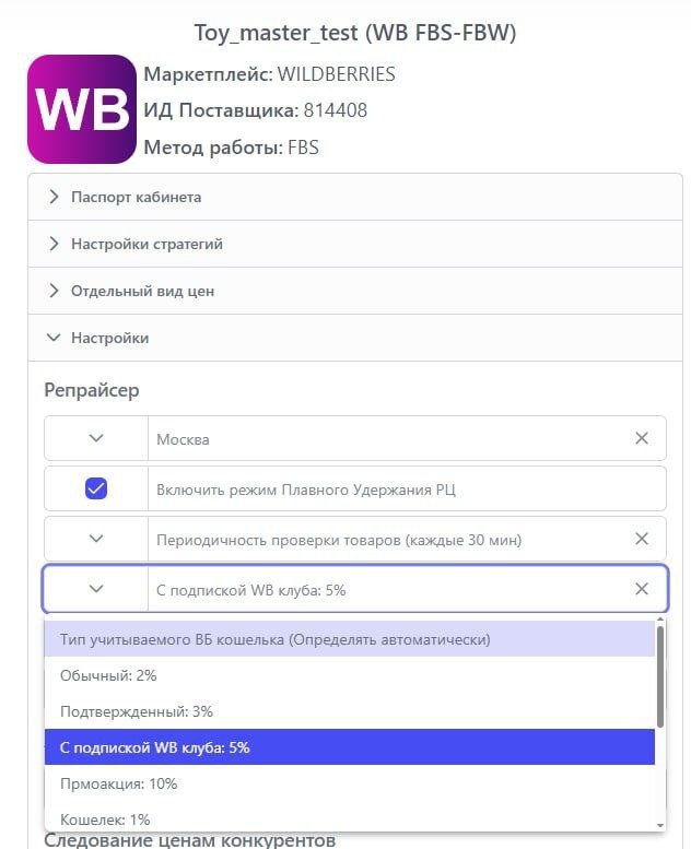 ⚡️ "Тип учитываемого кошелька" - новая опция в настройках стратегии Удержание РЦ на Wildberries.